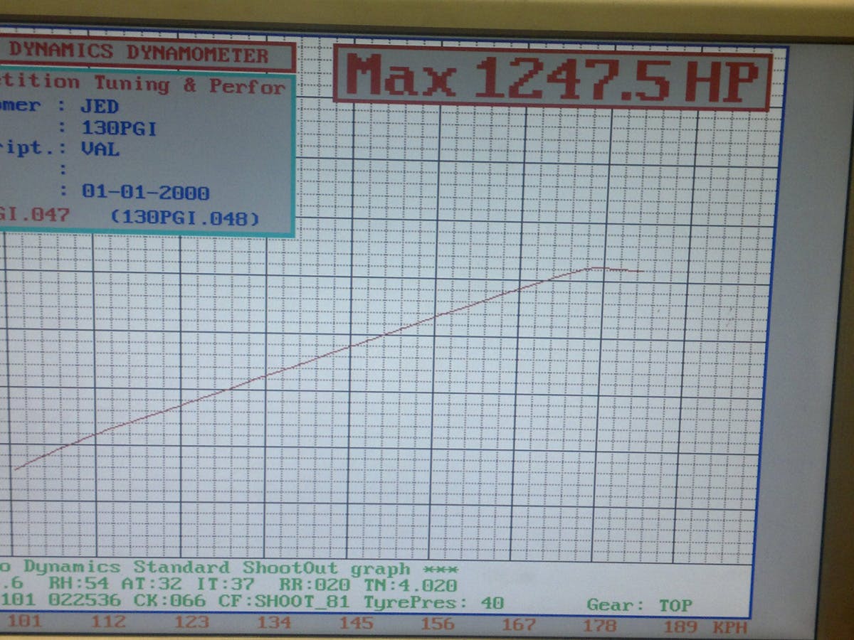 The methanol fuel permits a cool intake charge without the use of intercooling; with only 20 degrees of timing, the engine puts out 1,247 horsepower at the wheels with only 12 pounds of boost on tap. Increasing boost pressure to 16 psi, the engine shows close to 2,000 flywheel horsepower. The turbochargers aren’t even close to being tapped out at that boost level – there’s plenty more hidden in the combination as the team sorts out the car.
