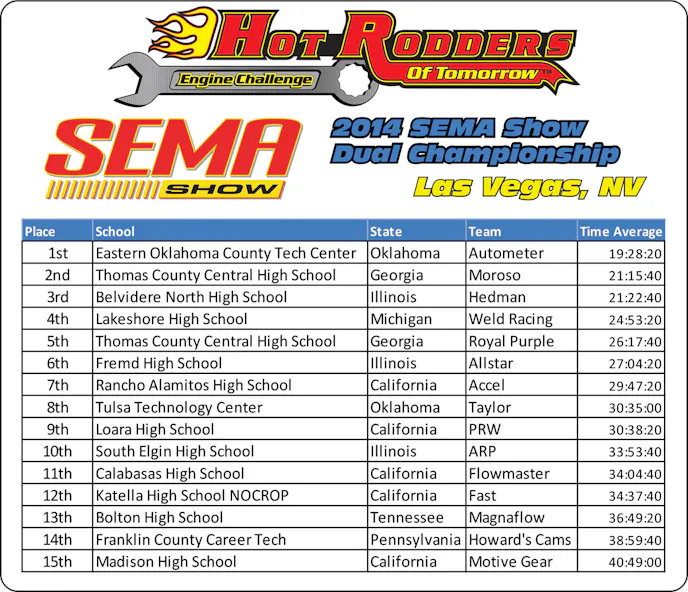 At the recent SEMA Show held in Las Vegas, the Hot Rodders of Tomorrow held the first half of their Engine Challenge Dual Championship. The high school students competing in this event had their largest group of spectators at any Engine Challenge to date.