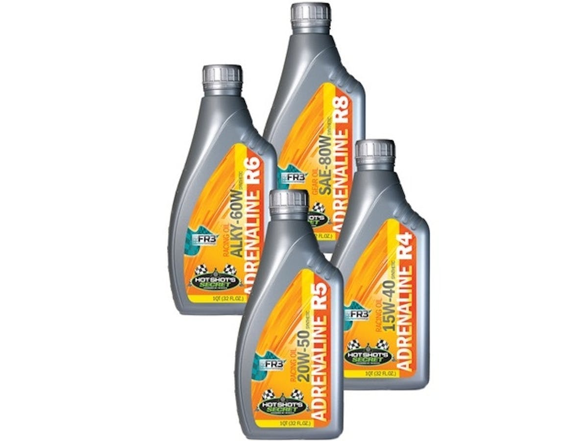These premier racing formulas have been engineered as a result of continuous performance gains being made with the Hot Shot’s Secret FR3 Friction Reducer oil additive. The FR3 formula contains 3 patented nanotechnologies that work together to increase the efficiencies of a motor, reduce wear, reduce oil temperatures, restore lost compression and of course, increase horsepower. The same technology that has brought FR3 to the attention of many racing teams is now being blended into Hot Shot’s Secret’s very own line of ADRENALINE High Performance Racing Oils.