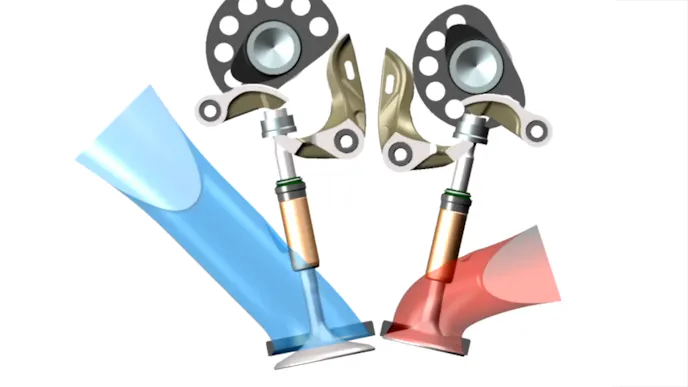 To address this problem, Ducati’s patented Desmodromic valve system eliminates the need for valve springs entirely. One cam lobe opens the valve, and another cam lobe closes it, using rocker arms to precisely translate each motion. This removes the unpredictability of springs and gives precise control of valve movement at any engine speed. This valvetrain system is a defining feature and a key factor in the Ducati V4R’s ability to operate at such an extreme RPM.