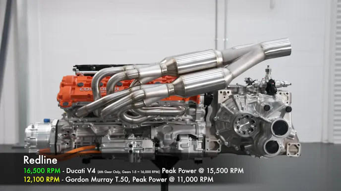 Comparing the high efficiency of the Ducati V4R engine to other high-performance naturally aspirated engines, such as the 4.0-liter V12 in the Gordon Murray T50, we can see just how impressive these numbers are. The T50 engine produces 661 horsepower or roughly 165 horsepower per liter, one of the highest figures ever seen for a naturally aspirated engine in a production car.