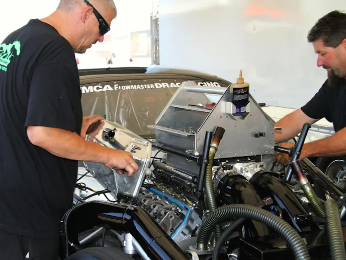 “It’ll go about 65 passes before I take it out, tear it down and put in new rods,” says Oksas. “Not too many run a vacuum system on a Brad Anderson. We feel it helps with the turbo and seats the rings a little better.”