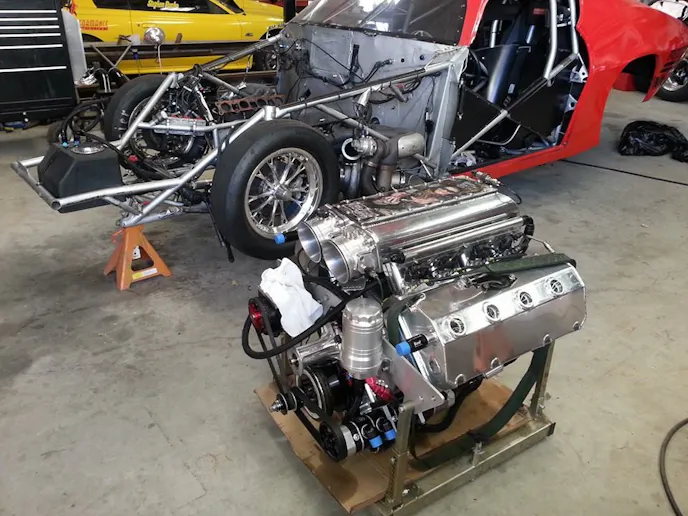 The engine was built by QMP Racing and initially set up on the dyno (see video below for a run up to 18 pounds of boost making more than 2,000 horsepower).
