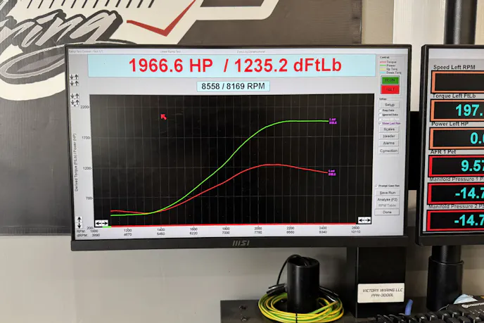 Owner/builder Jon Rogers is used to high-performance engines, as he is a veteran 2JZ guy. The chance to do something truly different didn’t come with the price tag you may think it did. Most of the $10,500 spent on the long-block lives in the cylinders (rods and pistons), so this could be reproduced on a budget. You won’t get 2,000 horsepower without a massive turbo, though. The Nissan 240 runs a Precision Turbo 98mm unit at 43psi, so there is a definitely a steep price tag outside of the engine itself. Rogers runs a Haltech R5 and universal harness to manage the squeeze and bangs.