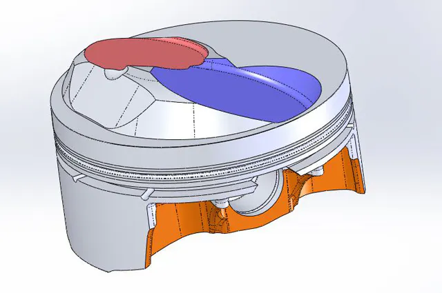 Two more views of the piston design. Material is strategically removed to lighten the product without removing strength.