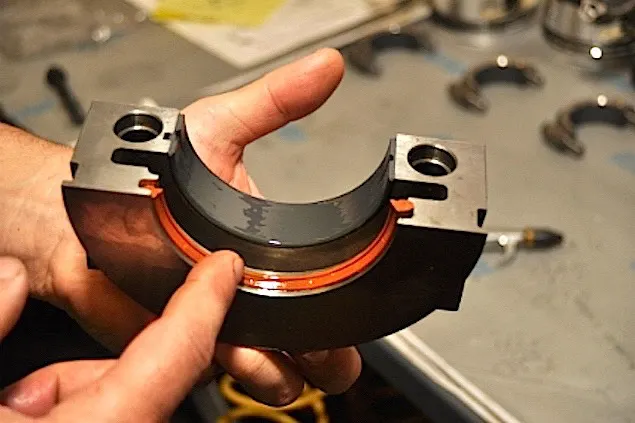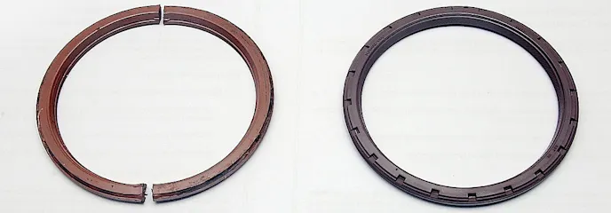 Obviously a 1-piece seal won’t fit over the flywheel flange, so the Kaase seal is designed to be severed at a specific point with a sharp razor blade. The seal is then wrapped around the crank behind the bearing surface and mated with a small daub of silicone sealer.