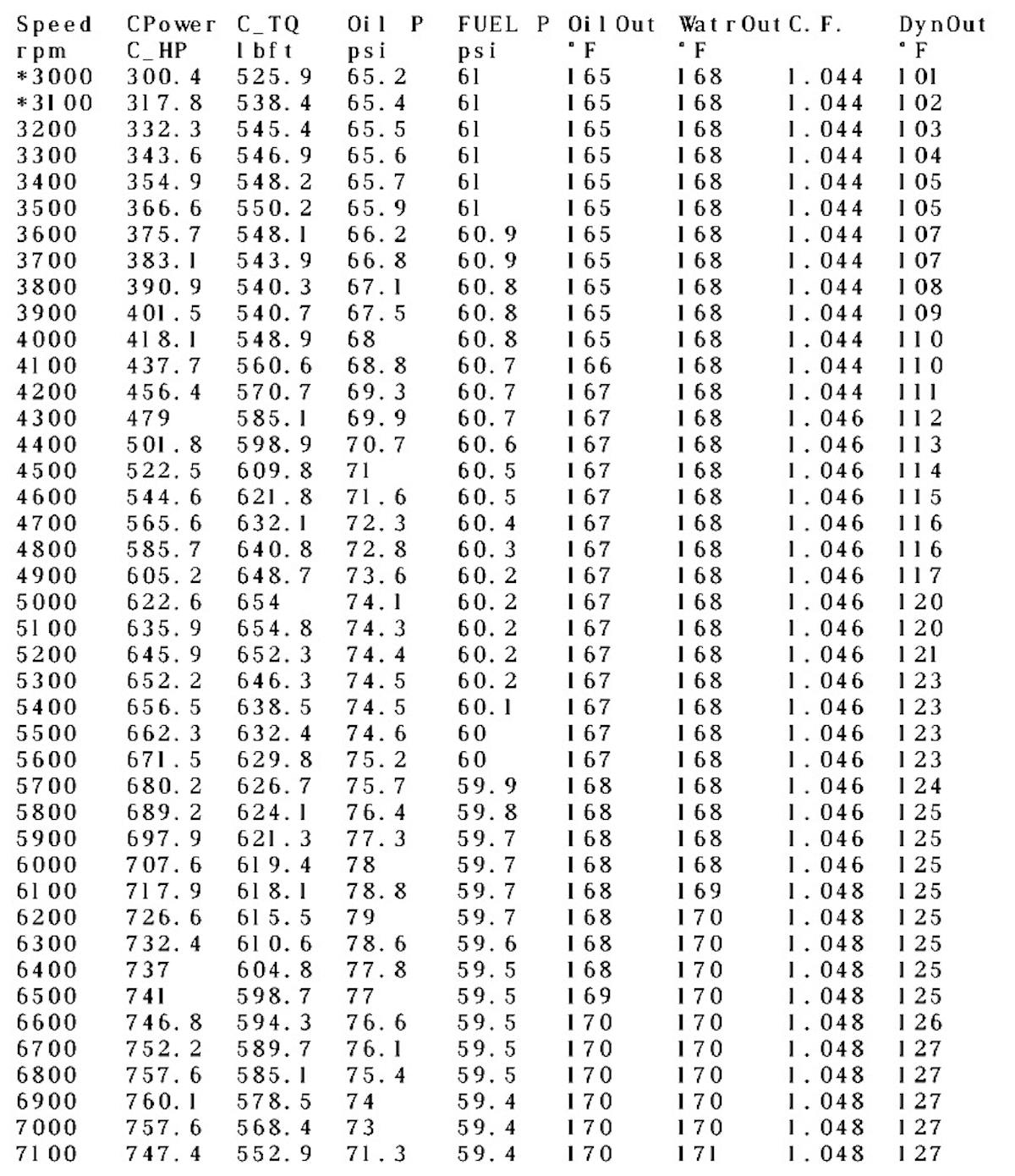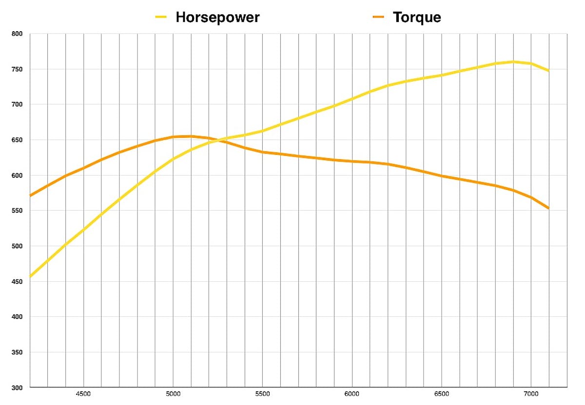 “I didn’t even want to tell anybody what it made until we dynoed the next engine to makes sure there wasn’t something wrong with the dyno. I was really amazed, that running on 91 octane it made 760.1 horsepower and really strong torque numbers at 654.8 lb-ft. The curve is flat too, so it holds it through the mid range,” Chris Muzio of Danzio showed us.