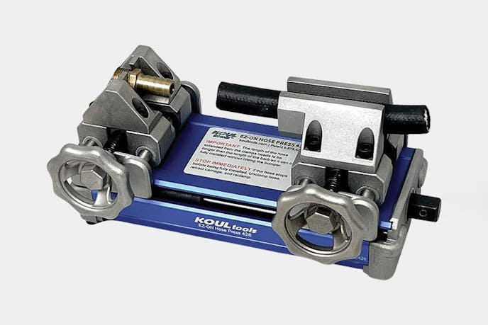 Now, we realize that most of you reading this probably don’t have any two or three-inch hose lying around in need of fittings. But, Koul Tools does have four other models of the EZ-ON hose press for lines you will find on your engines. Built with the same precision craftsmanship and high-end materials as the new model, the EZ-ON Hose Press, Model 426, will work with hose sizes ranging from 1/4-inch inner diameter to 1.0-inch I.D.