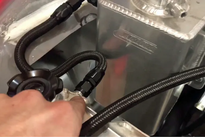 “In a recovery tank setup, the line coming off of the expansion tank will go to the bottom of the secondary tank,” Whalley explains. “What that does, is allow the overflow fluid to be drawn back into the system as the system temperature returns to normal and pressure drops.”