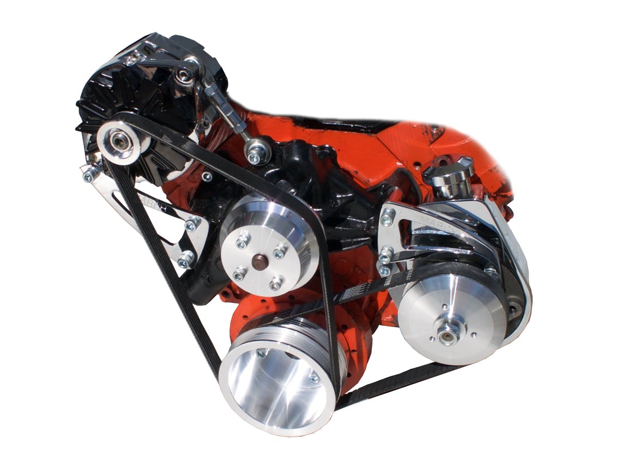- Comes with chrome steel plated brackets for alternators and power steering pumps