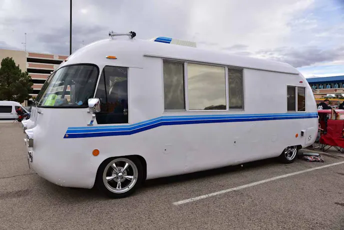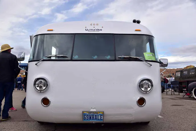 “The Ultra Van is a unique motorhome. Powered by a Corvair engine and transaxle, it was designed by David Peterson (a professional aircraft designer) in the early sixties. These units were produced in limited quantities by Ultra, Inc. of Hutchinson, Kansas until June of 1970.As a true monococque structure, the Ultra Van has no chassis. It is constructed like an airplane with aluminum ribs covered with riveted sheet aluminum on the top and sides. Compound curved areas (front and back corners) are fiberglass. All wheels are independently sprung with coil springs and tubular shock absorbers. These units cruise easily at 60 mph and deliver 15 plus mpg. More than 100 of about 376 units produced are still on the road, many with between 100,000 and 500,000 miles of use. Length: 22 feet Wheelbase: 152 inches