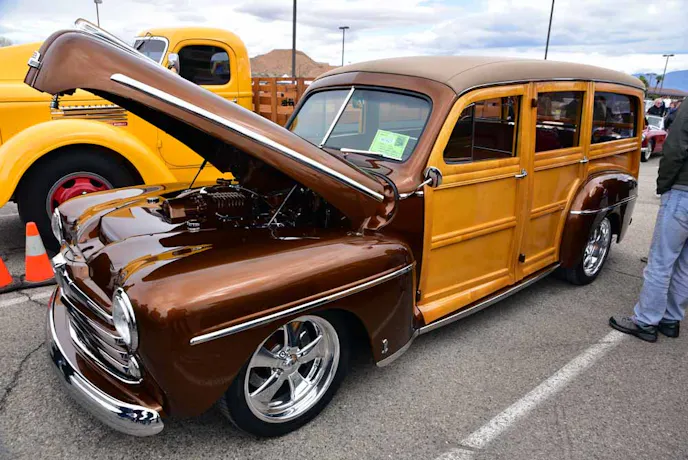 George and India Sepulveda from Lake Havasu City, Arizona brought one amazing 1948 Ford Woodie Wagon to the show. Although you tend to see many different engine combinations in these, we did not expect to see a supercharged 4.6-liter, 4-valve mod motor from a mid 2000s Cobra. To top it off, the entire engine bay and top half of the was painted in “root beer” to match the car.