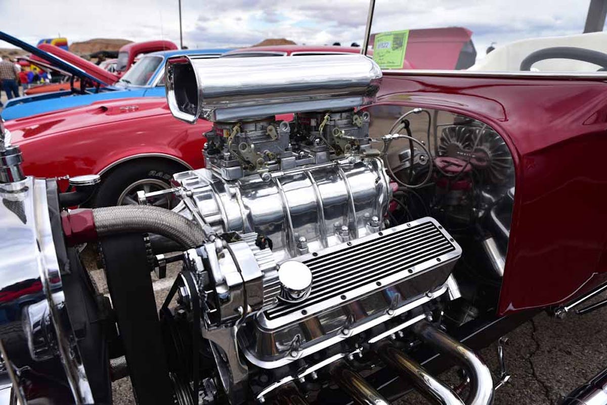 DSC_2518For the past nine years, a small resort town just 80 miles north of Las Vegas named Mesquite, Nevada hosts one of the state’s largest automotive gatherings. This year, over 800 cars, trucks, bikes and special interest vehicles gathered upon the towns three hotel/casino properties in a joint effort to help boost the local economy. The event is called, “Mesquite Motor Mania” and it provides a wide variety of combinations from mild to wild. With over $15,000 in cash and prizes as well as 260 awards, we saw some amazing machines. We popped the hoods of some of vehicles there and saw everything from numbers matching engines to a very popular term, engine “swaps.” Here are some of our favorite engines!