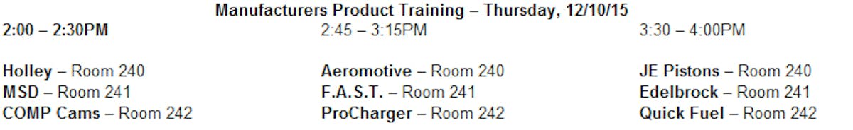 On Wednesday, December 9, in Room 243 from 11:00AM to 1:00PM, MPMC will be holding their 2015 Open Membership Meeting. The latest developments from the MPMC council will be discussed, and the opportunity for members to share industry issues, challenges, and solutions with fellow motorsports parts manufacturers will exist. They’ll also feed a complimentary boxed lunch. The meeting is open to all exhibitors at PRI, regardless of whether the exhibitor in question is a member of the MPMC.