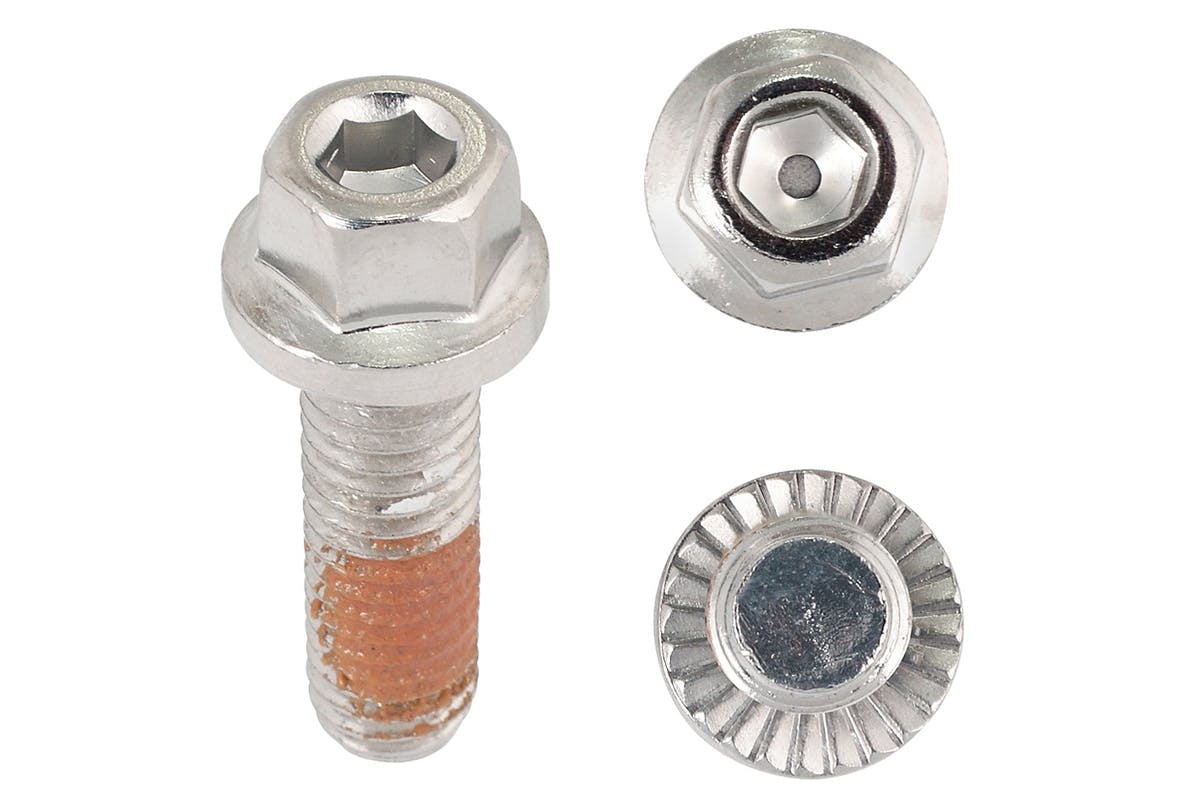 Mr. Gasket’s HeadLock header bolts eliminate the need for lock washers when installing header exhaust. Instead, the innovative patent pending design incorporates 24 serrated teeth into the flanged hex/socket head, each equally spaced, designed to grip and lock onto the header flange, maintaining consistent fastener clamp-load.