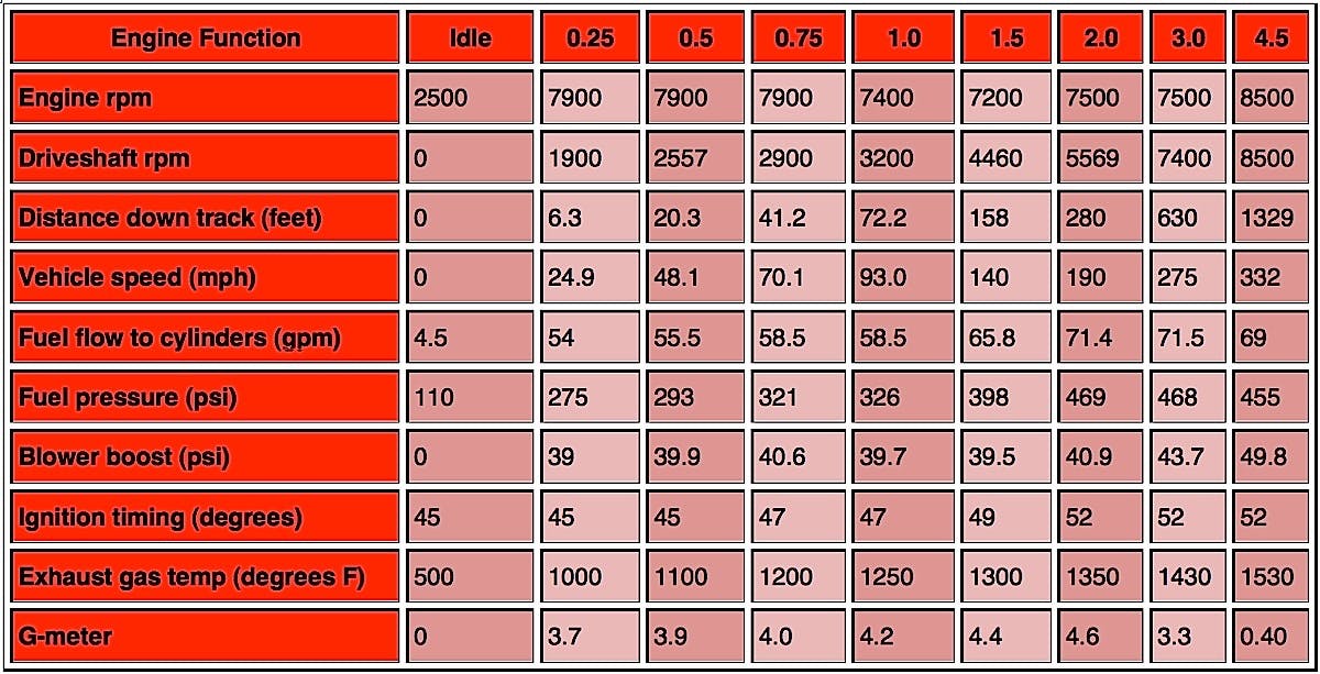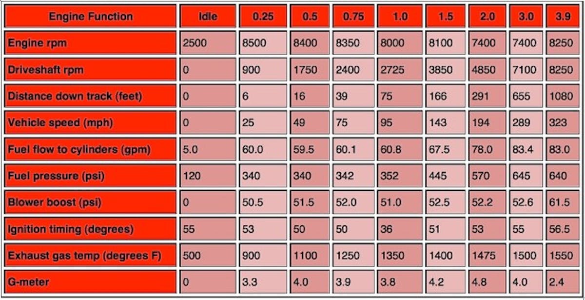 • You can burn more fuel in a Funny Car from half track to the lights than in a dragster.