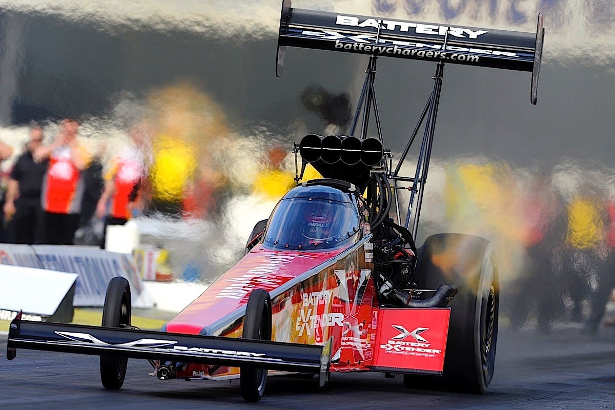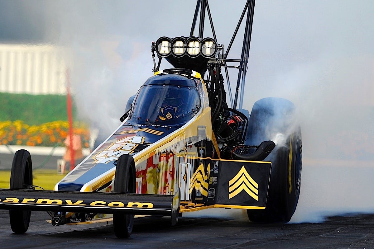 Tony Schumacher, the current NHRA Top Fuel champion, has the fastest recorded run at 337.58 mph. NHRA photo