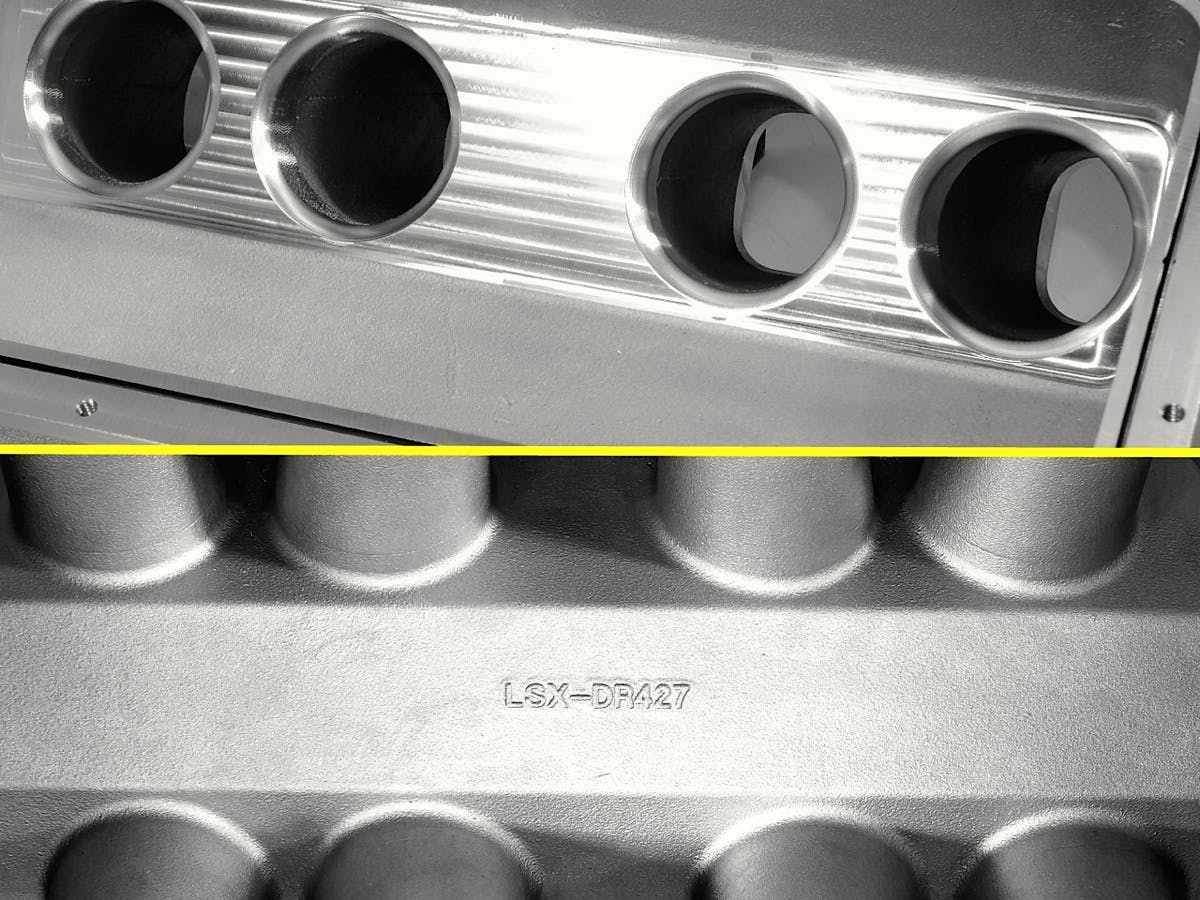 The new intake manifold, which carries GM part number LSXDR427, was designed in conjunction with Chevrolet Performance and CFE. A sheet-metal prototype was built following extensive computer modeling and CAD work between the two groups, then tested at Cagnazzi Racing.