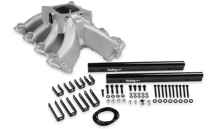 Race-bred Holley Single-Plane Split-Design EFI Race Intake Manifolds are available in both silver and black and feature an A-B height of 7.32 inches (0-degree carb-flange angle) for plenty of under-hood clearance and cathedral ports 3.28 inches tall and 1.10 inches wide. They’re ideal for EFI applications with displacements from 5.3L to 6.2L and deliver optimal performance across your entire RPM range and maximum power up to 7,000 RPM. To ensure a fast, hassle-free installation, the fuel rails, O-rings, and all the necessary fasteners are included.