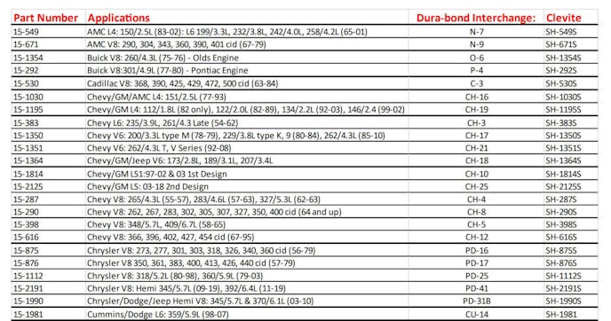 The initial 39 engine applications are listed below with a full part number cross-reference/interchange, and are currently available at any distributor or retailer where Engine Pro parts are sold.