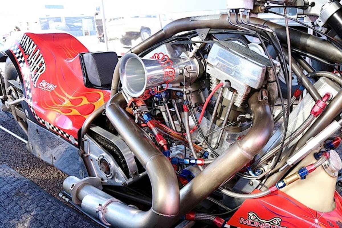 There are some similarities, but there are also plenty of differences between the engines in the Top Fuel Harley motorcycles and the Top Fuel dragsters that run at NHRA events.