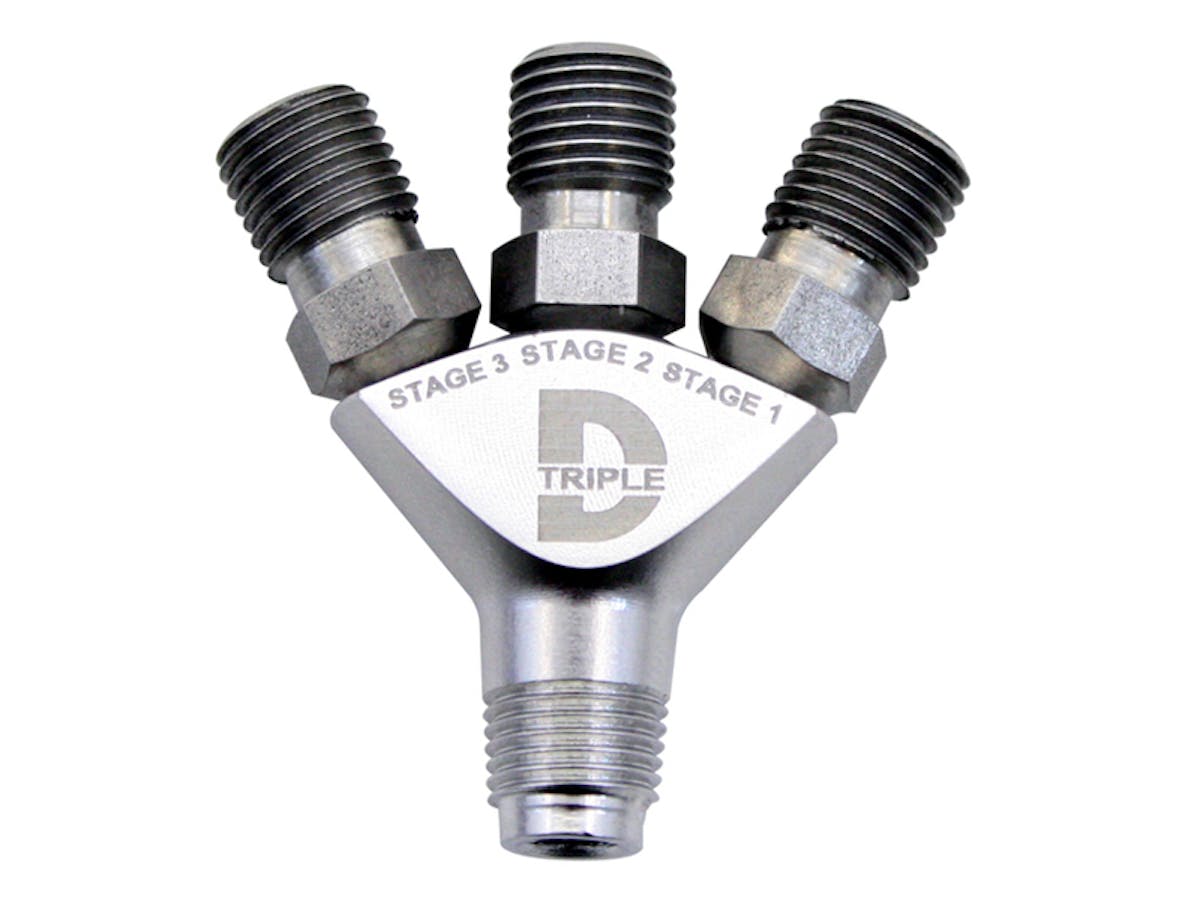 - Allows users to run three stages of dry nitrous through a single nozzle
