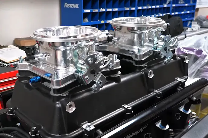 As was mentioned, this project will use two of Holley’s 1,000-cfm 4150 throttle bodies, which means two nitrous plates. However, the NOS Big Shot plates will only have the nitrous side plumbed, as the Terminator-X ECU will be controlling the fuel enrichment through the main fuel injectors. The Terminator will also be controlling the nitrous solenoids through the built-in progressive nitrous controller, capable of pulsing the solenoids to control the flow of nitrous between 0 and 100-percent.