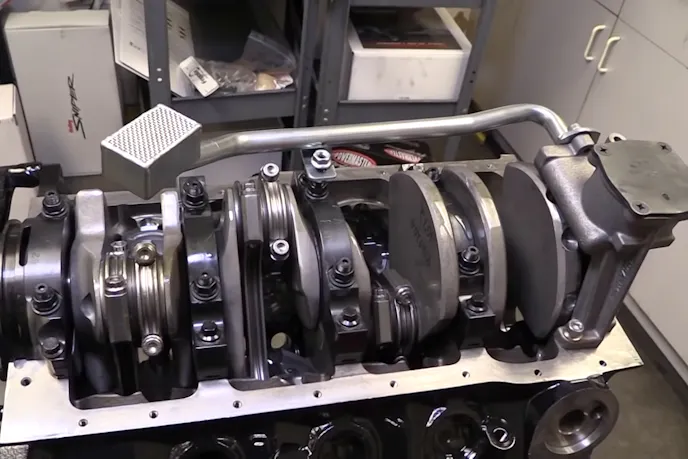 Being dropped into the billet mains of the block is a 4.00-inch stroke, internally balanced Eagle crankshaft. Made from forged 4340 steel, the eagle crankshaft should easily hold up to the target power, especially without any external balancing required. Attached to the crank are a set of Eagle H-beam connecting rods. Made from the same forged 4340 steel as the crank, the 6.250-inch long rods use ARP2000 rod bolts and are a solid balance of weight and strength.