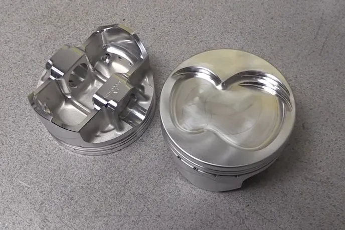 Hanging off of the connecting rods is a set of 4.125-inch forged pistons from DSS Racing. The 1.280-inch compression height is needed to fit the 6.250-inch rods, but isn’t so extreme that the wrist pin bore cuts into the oil control ring groove. The ring pack measures in at 1.2mm, 1.5mm, 3.0mm, and the 22cc reverse dome on the piston helps keep compression to a streetable level.