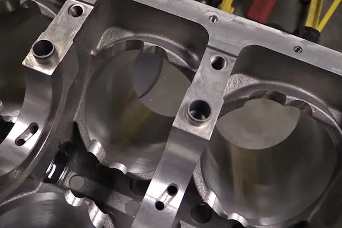 Starting with a new iron alloy, the Man O’ War adds strength through increased material in key areas, like reducing the main cap fastener size from 1/2-inch to 7/16-inch diameter in order to beef up the material around the fastener. Additionally, the Man O’ War can accept a larger 4.125-inch bore, has two extra head bolts per cylinder and has extended cylinder bores that can accept up to a 4.250-inch stroke.