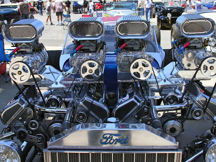 With that in mind, Rod Authority’s Mike Alexander and EngineLabs’ Mike Magda brought their cameras to local car shows held on Father’s Day and snapped a cross section of engines. They found the usual characters like flatheads, Hemis and SBCs, but there were also some rare standouts like Ford SOHC and a Gurney-head SBF. Throw in some classy looking straight-6s, and we’ve assembled a galley with a wide range of powerplants. You’ll see a twin-turbo, tri-power, 4-packs and plenty of injection stacks. The showcase is also a reminder that carbs aren’t dead, superchargers are still cool and chrome can shamefully be overused.Â
