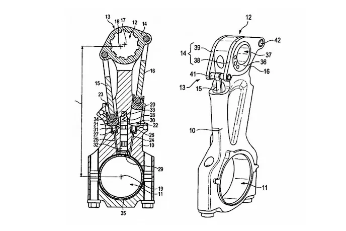 Porsche may be working on a variable-compression engine based on a recent patent application showing a connecting rod that changes its length with a hydraulic mechanism. According to news reports, the patent was sought in association with Hilite International, a global automotive engineering and consulting firm. That partnership filing indicates that the technology could be offered to other engine makers.
