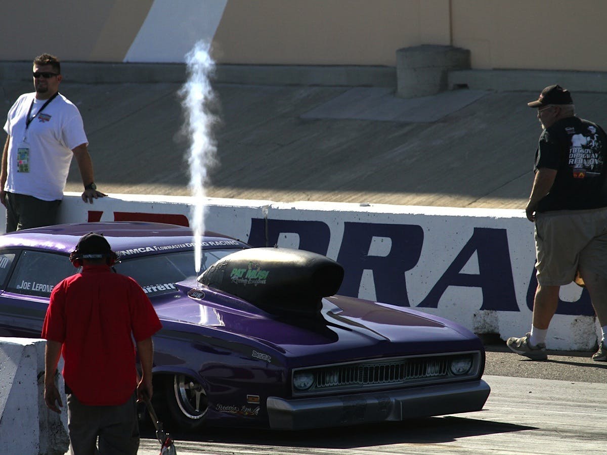 “We try to run the engine as cold as possible from the start. It’ll make less power, so we can put more nitrous at the start,” explains Lepone. “Then when you get heat in the engine at half track, it starts making power and it won’t hurt itself as you add more nitrous.”