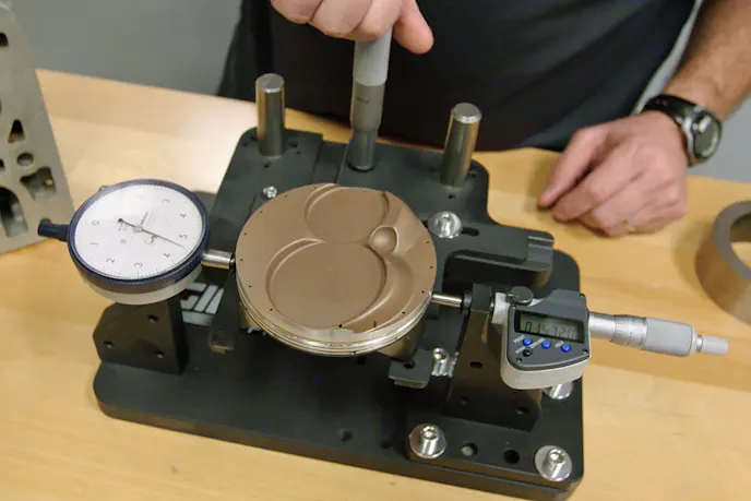 While this might seem like an extreme example, it is. But, it illustrates a concept that exists in all pistons, known as “ovality” and can be measured via a specialized fixture. However, that brings up another point: if the piston isn’t perfectly round at room temperature, how do you measure things like piston-to-wall clearance?