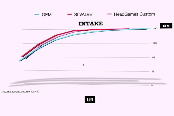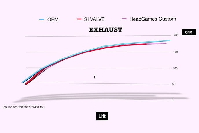 HeadGames’ custom valve has always been popular for its undercut stem, which was designed to reduce weight and improve flow. However, during testing, this didn’t make as much of a difference as expected. The SI valve, with its slightly heavier build and smooth flow characteristics, came out on top. Localio noted that the back-cut design, while unconventional, played a big role in improving airflow. Initially, he had concerns about the ridged transition, but the numbers didn’t lie — the SI valve delivered where it mattered.