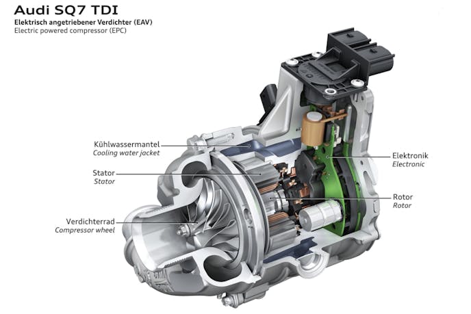 Absurdity aside, German automaker Audi has not only done the engineering and design work to properly package and execute the industry’s first production electric supercharger, but they have incorporated it into an extremely involved and complex system of forced-induction aimed at not only absolute power, but seamless application of that power with elimination of turbo lag, releasing the technology to the public in the 4.0-liter V8 TDI engine powering the SQ7 luxury SUV.
