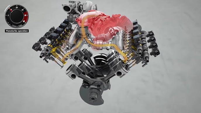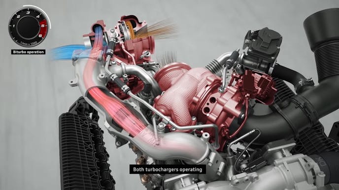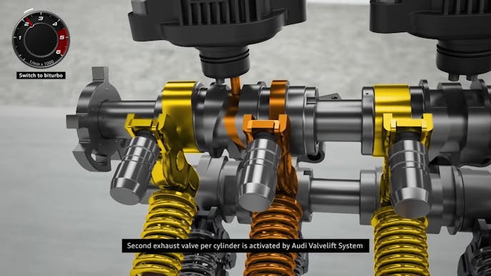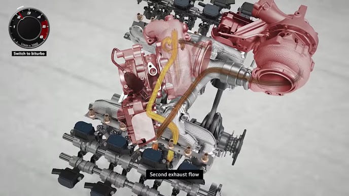 In the video above, the system is shown through slick animations, while in the video below, Jason Fenske of Engineering Explained does a great job of breaking down Audi’s intensely complicated system that involves a heap of electrical components, three separate compressors, and a cutting-edge cam and valvetrain system that revolutionizes how exhaust is fed to the two traditional turbochargers in the system.