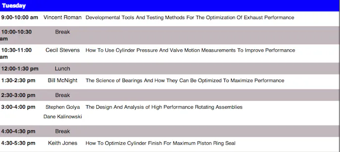 Thirteen sessions have been set for the three-day conference, which will be held Dec. 9-11 in Indianapolis, Indiana, just prior to the 2013 PRI show. Hundreds of engine builders, engineers, media, parts manufacturers and racers are expected to attend to exchange ideas, learn new tricks, see new products and network throughout the industry. AETC officials always arrange the schedule so there is plenty of time to discuss issues with speakers and other attendees. There are also plenty of freebees and opportunities to win a share of some $30,000 in giveaways.