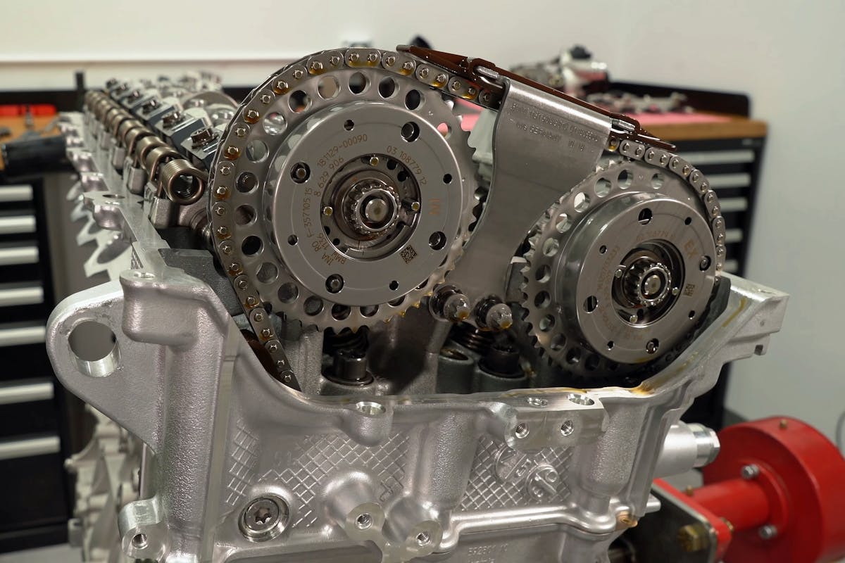 Once the valve cover is removed, we are greeted with a pair of ECU-adjustable cam gears, allowing both the intake and exhaust cams to take advantage of variable timing.
