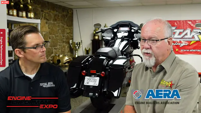 The following presentation by AERA‘s Chuck Lynch and Steve Fox highlights the resources available to those in the industry and those who want to be in the industry through AERA’s vast network of offerings, from simple help with obscure engine rebuild specifications, to educational programs leading to certification as a cylinder head specialists and an automotive machinist. That was followed by a live episode of Total Seal‘s Hidden Horsepower with NHRA Nitro Funny Car driver and team-owner Tim Wilkerson, who showed up straight from the Thunder Valley Nationals to talk to Lake Speed, Jr.