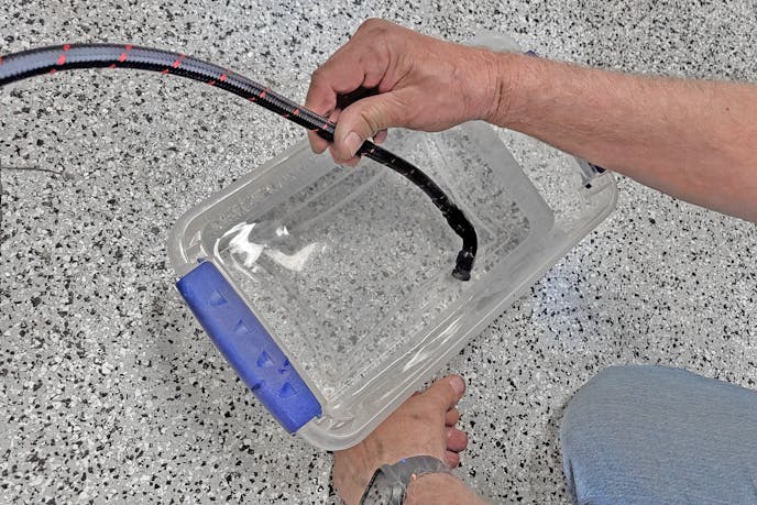 To be fair, “assembling” is a bit of a stretch. All we did was thread the 1/4-inch NPT adapter into a brass female air-hose quick disconnect fitting we had lying around with a little Teflon tape, and that was it. From there, we set the air compressor to a mild 80 psi of tank pressure and then capped off one end of a line, threaded in our quick-disconnect assembly to the other side of the line, and plugged it all into the air hose.