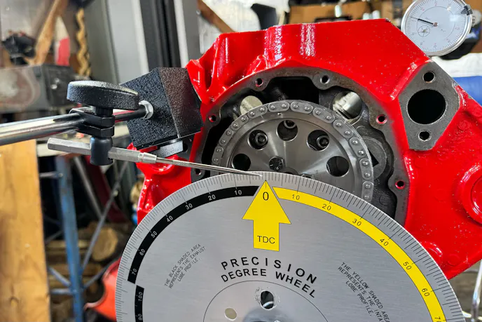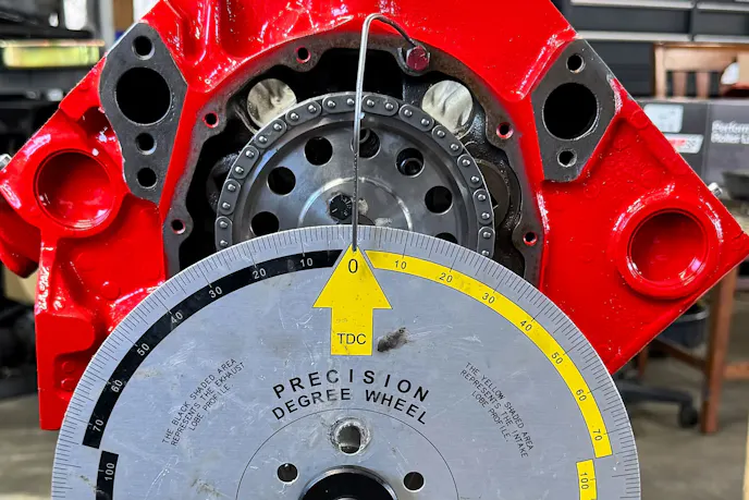 Also, we’ve back-to-back degreed a cam using a wire setup and a precise pointer setup, and gotten two separate results, a degree and a half or so off. That is enough of a difference to necessitate a change in cam timing, as most of our timing sets used are adjustable in two-degree increments.