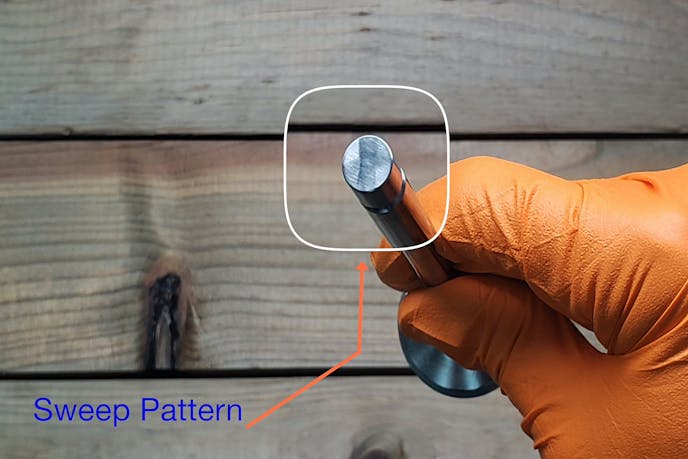 The desired pattern to see on your valve tip is known as the “sweep” pattern. As the name implies, it shows the rocker tip “sweeping” straight through the center of the valve tip. “The sweep is the correct pattern to have across the tip of your valve. That means that everything throughout your valvetrain is working correctly,” Urrutia concludes.