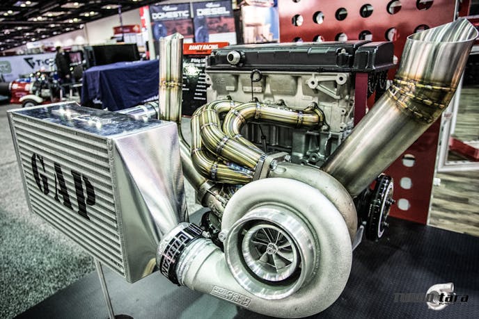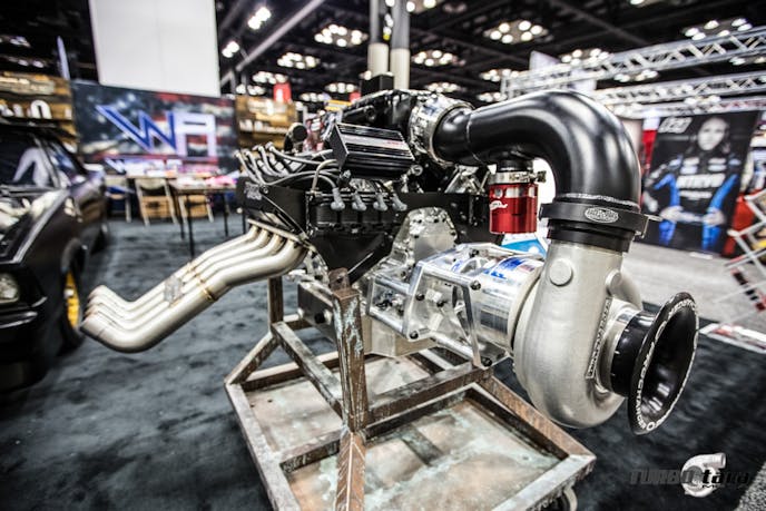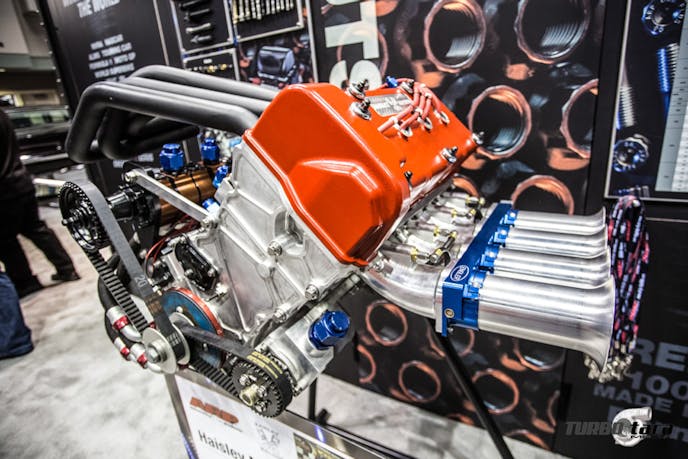 Proudly displayed at the Diamond Racing Pistons booth, this Ramey Racing B18C engine is boosted by Precision Turbo. It’s is rated at 1,400-hp and holds the world record for the fastest small-tire Honda on the quarter mile: 7.9-seconds at 189.9 mph.
