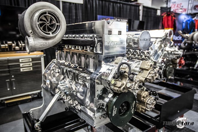 Among the engines featured by Wagler Competition Products, this Cummins engine made us feel warm and fuzzy inside. The bling is brought to you by a billet aluminum head and block, which is stuffed with Wagler Competition Cummins parts.