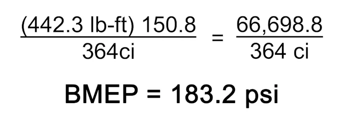 So how did people know the numbers didn’t make sense? Quite simply, through Brake Mean Effective Pressure (BMEP). Simply put, Mean Effective Pressure is a calculation of the average engine cylinder pressure throughout the combustion cycle. Adding “brake” in front of it simply means the number was calculated from a torque value measured on an engine dyno.