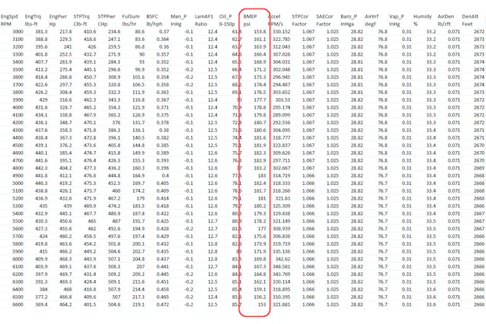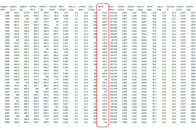 A while back, we posted an article explaining some of the different numbers, other than horsepower and torque, you will find on an engine dyno report. Jeff Smith did a great job of explaining several different calculated values on that sheet (including BMEP), what they mean, and how to use them in your daily life.