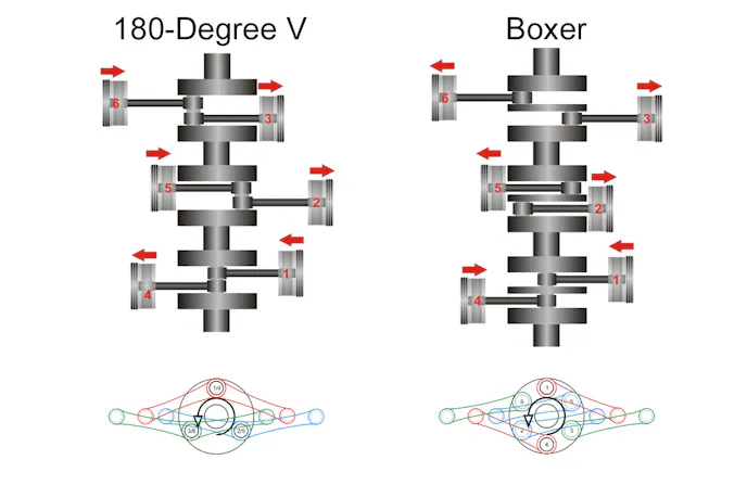 You might be asking yourself, “If you weren’t going to utilize the inherent smoothness of the Boxer configuration, why would you bother making a 180-degree V engine?” The answer comes down to vehicle dynamics, rather than engine dynamics. The flat engine offers a lower center of gravity, which vehicle designers can make use of in a performance setting.