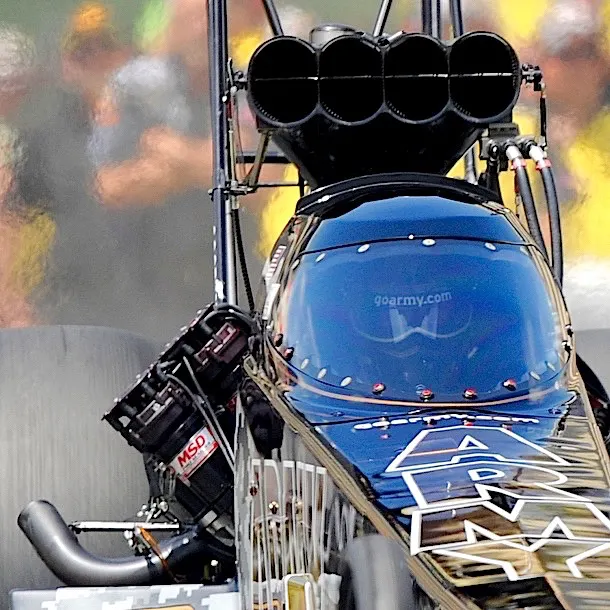 At wide-open throttle just two seconds into the run, the computer showed that Tony Schumacher’s dragster was pulling around 8,000 lb-ft of torque and over 10,000 horsepower. NHRA photo