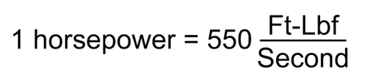 “1 horsepower equals 33,000 foot-pounds of force per minute.” Broken down further, that means that: